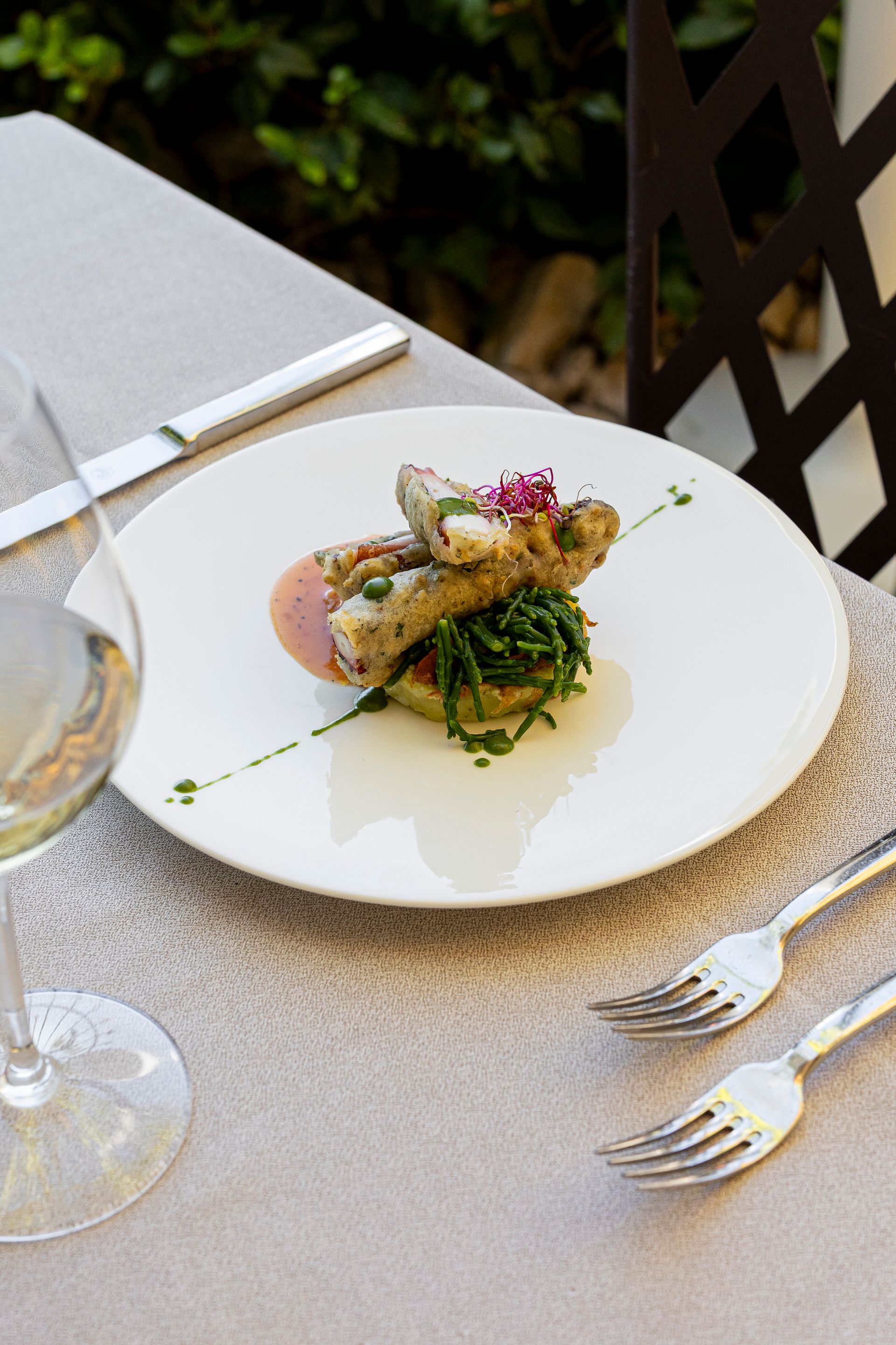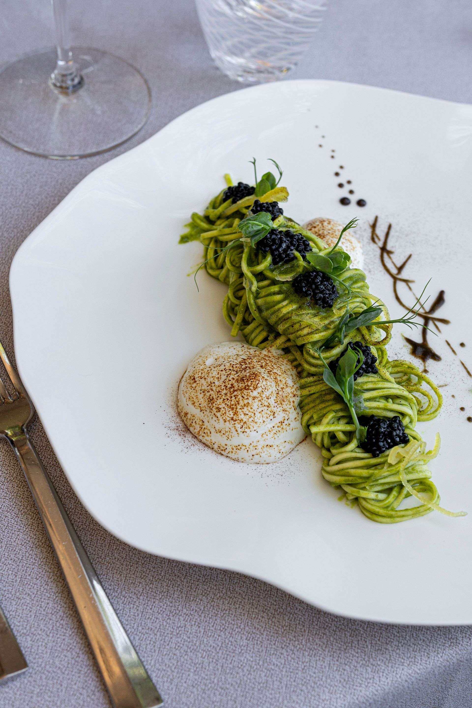 I menù, veri e propri percorsi sensoriali, conducono gli ospiti in un viaggio attraverso pianure, colline e coste, esaltando le ricchezze gastronomiche della regione. È possibile scegliere tra il menù di terra, che celebra i sapori più intensi della cucina tradizionale, il menù di lago, dedicato alla freschezza delle specialità ittiche, e il menù vegetariano, una raffinata interpretazione delle verdure di stagione.